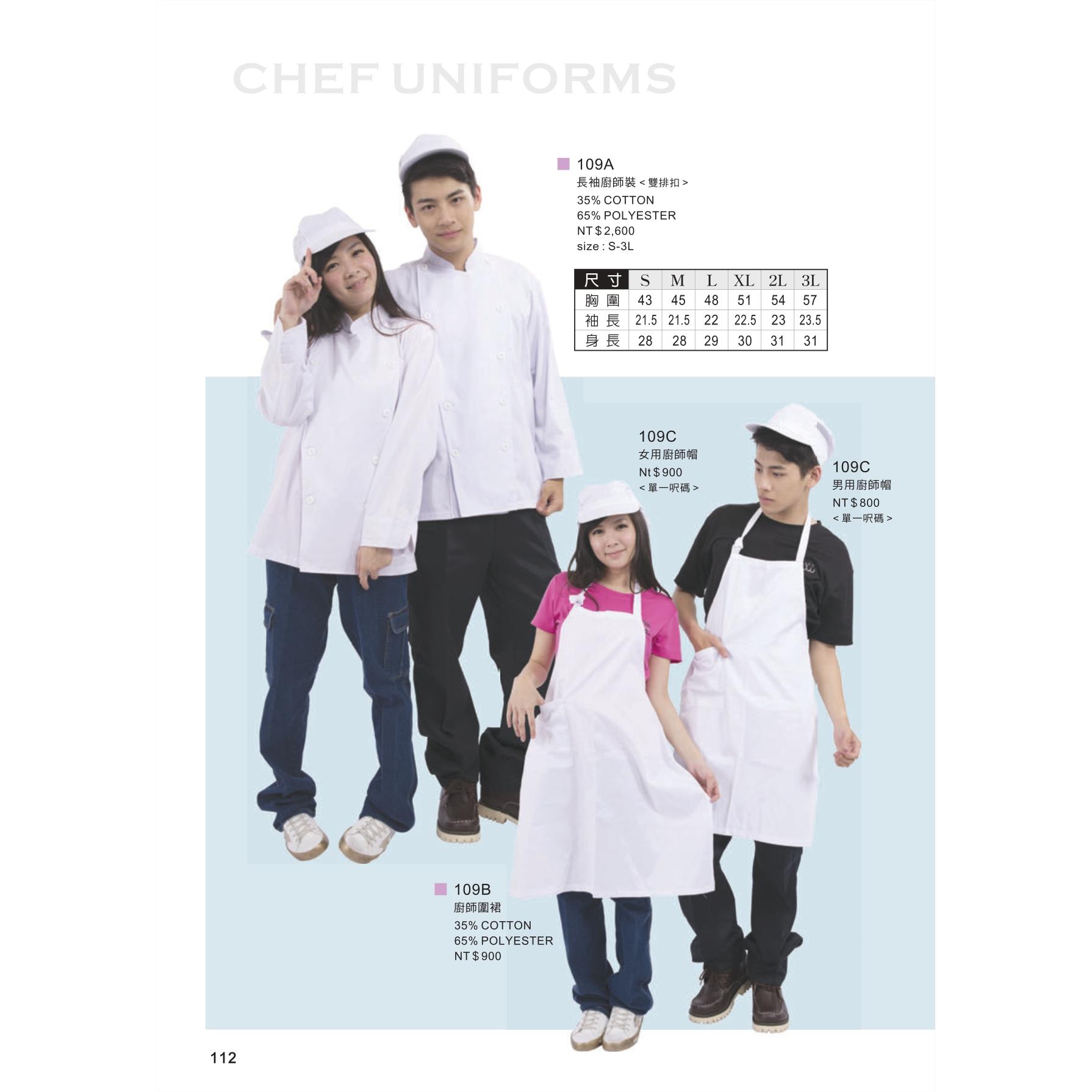 木居|長袖廚師裝<雙排扣> 109A